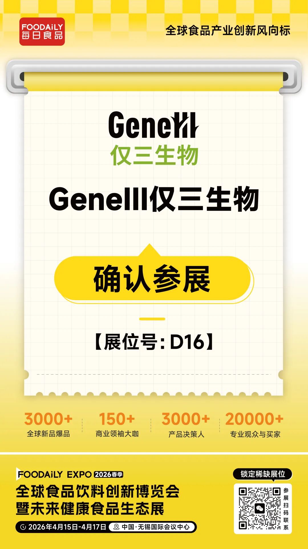 2026 Foodaily創新博覽會,僅三生物將攜旗下明星產品亮相無錫國際會議中心,D16展位,邀業界同仁攜手共築臨床實證型生物科技產業高質量發展新格局。