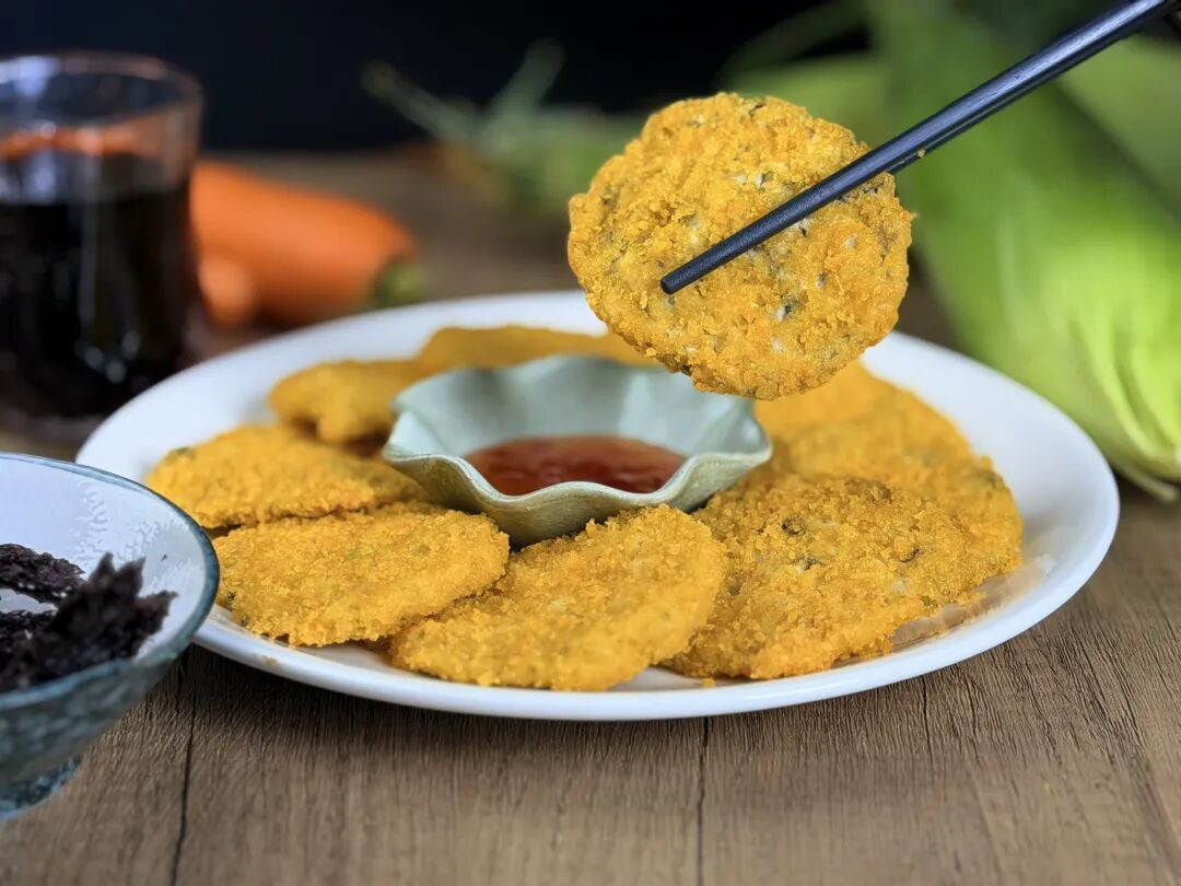 產品采用非轉基因大豆蛋白+蔬菜(胡蘿卜/玉米/豌豆等)配方,外酥裏嫩、彈牙有嚼勁,帶鮮鹹味,適合早餐、午餐、小吃等多種搭配場景。