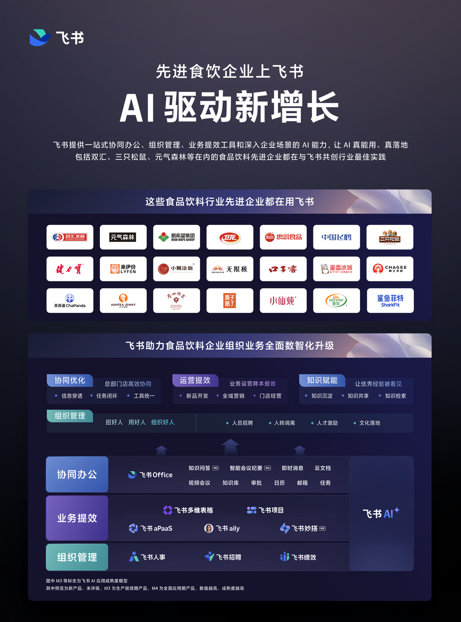 飛書為食品飲料企業提供從新品研發到終端經營的全鏈路Al數字化解決方案,助力企業敏捷響應市場變化,實現資源高效配置與全域人效提升。先進團隊,先用飛書。