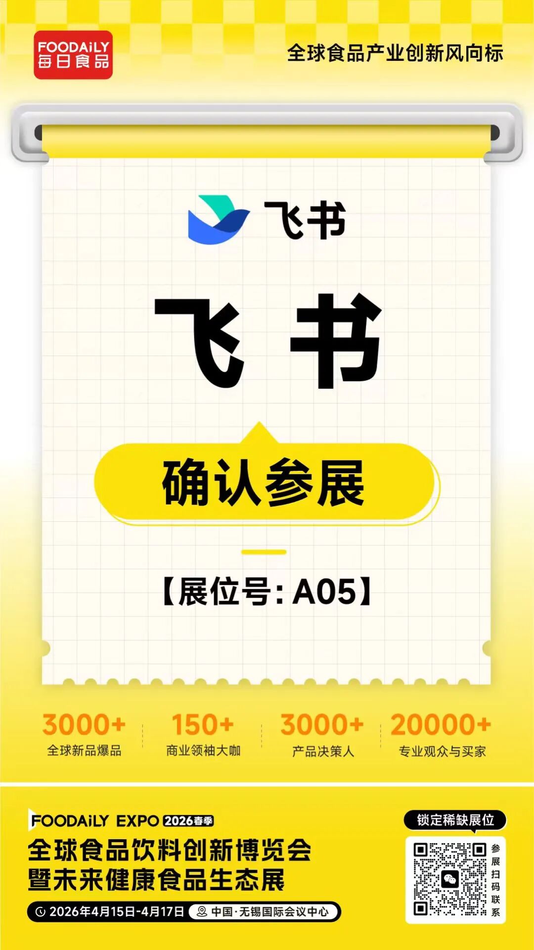 2026 Foodaily創新博覽會,飛書將攜食品飲料全鏈條全鏈路Al數字化解決方案亮相無錫國際會議中心,A05展位,與各界夥伴攜手,以AI驅動食品消費全鏈路數字化升級,讓洞察更精準、決策更高效、增長更確定。