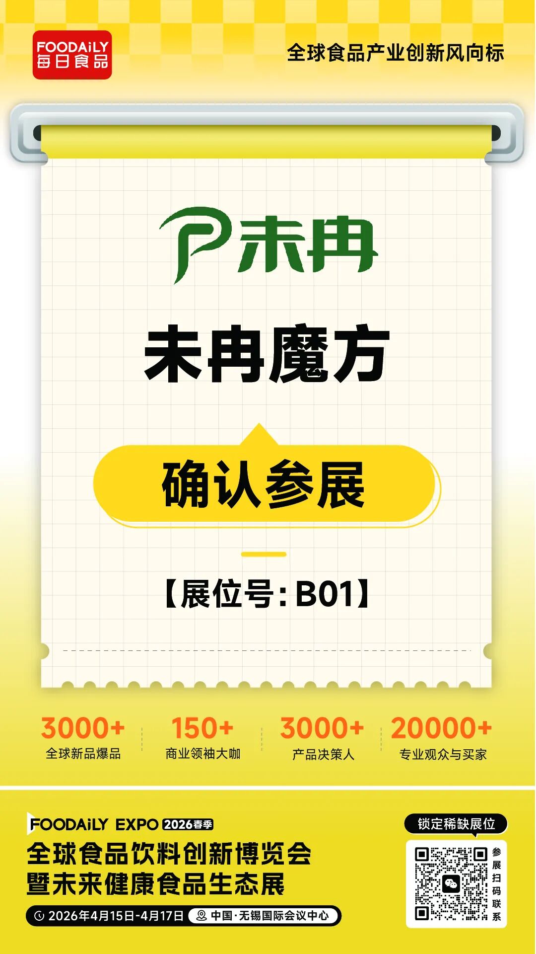 2026 Foodaily創新博覽會,未冉將攜旗下明星產品亮相於無錫國際會議中心,B01展位,邀業界夥伴共探未來食品與新質蛋白產業發展新機遇!