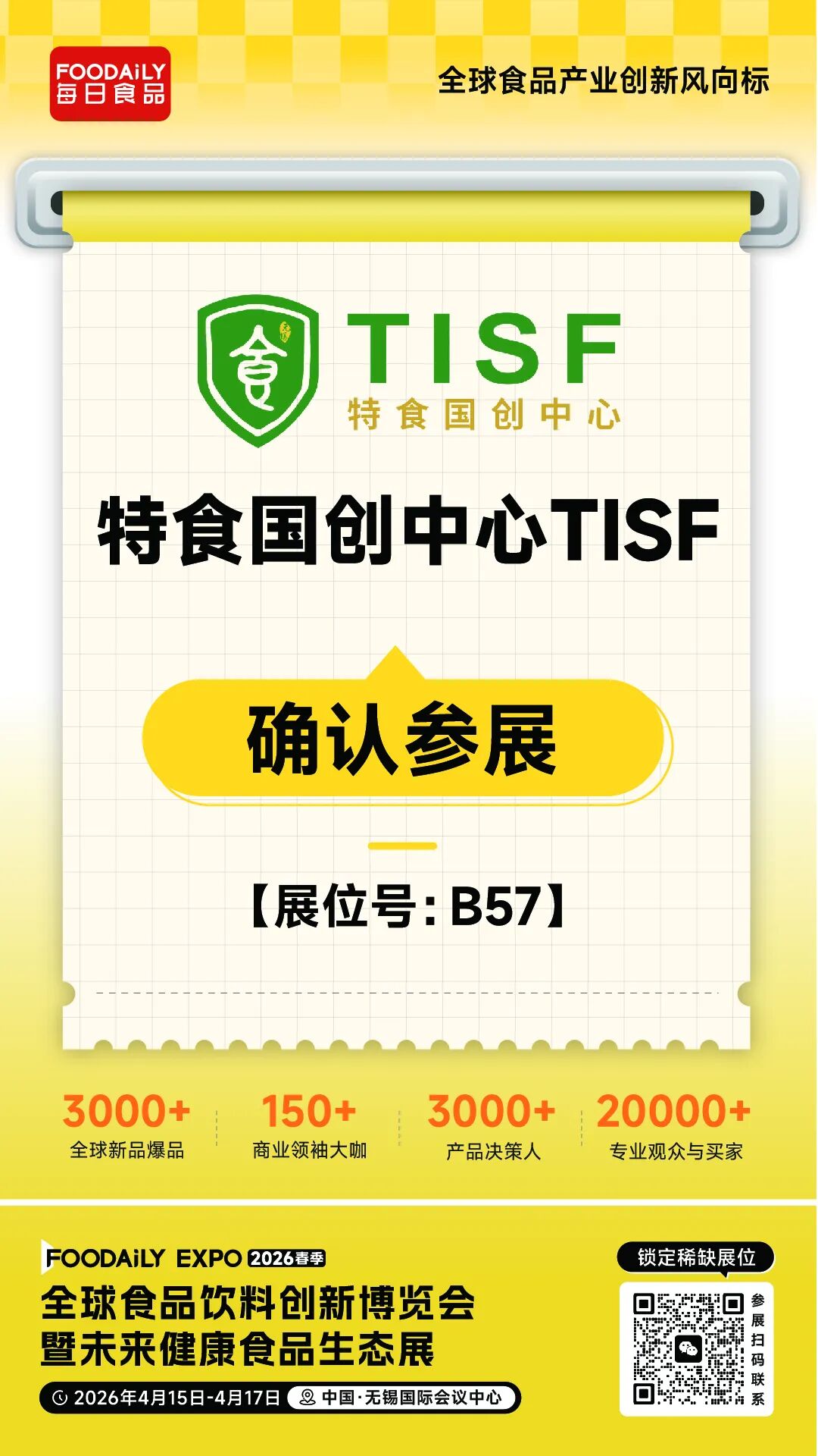 2026 Foodaily創新博覽會,特食國創中心TISF將攜旗下一站式服務體係亮相無錫國際會議中心,B57展位,期待與行業同仁攜手推動中國特殊食品產業邁向更高質量、更可持續的發展新高度。