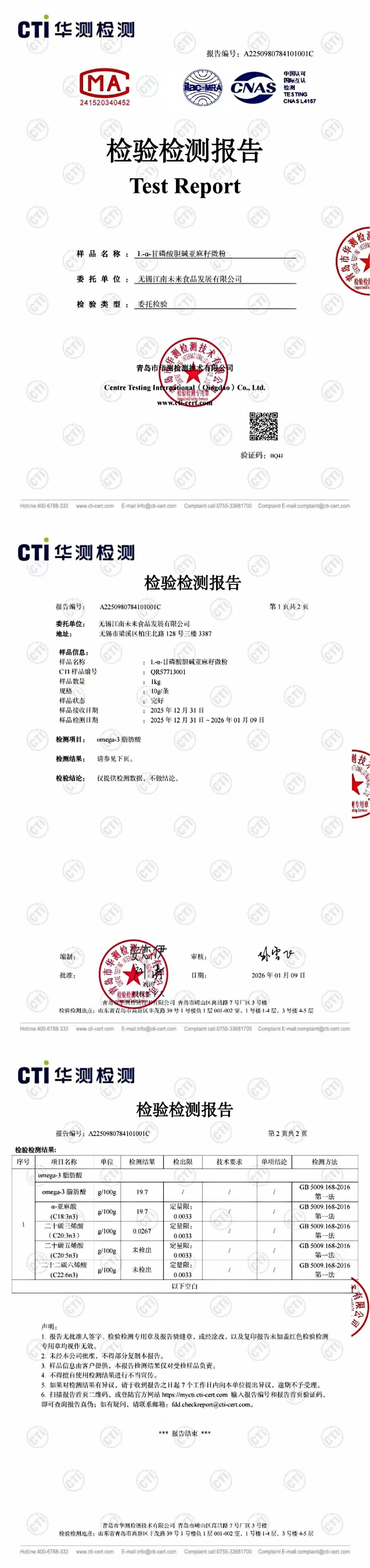 L-α-甘磷酸膽堿亞麻籽微粉-omega-3檢測報告